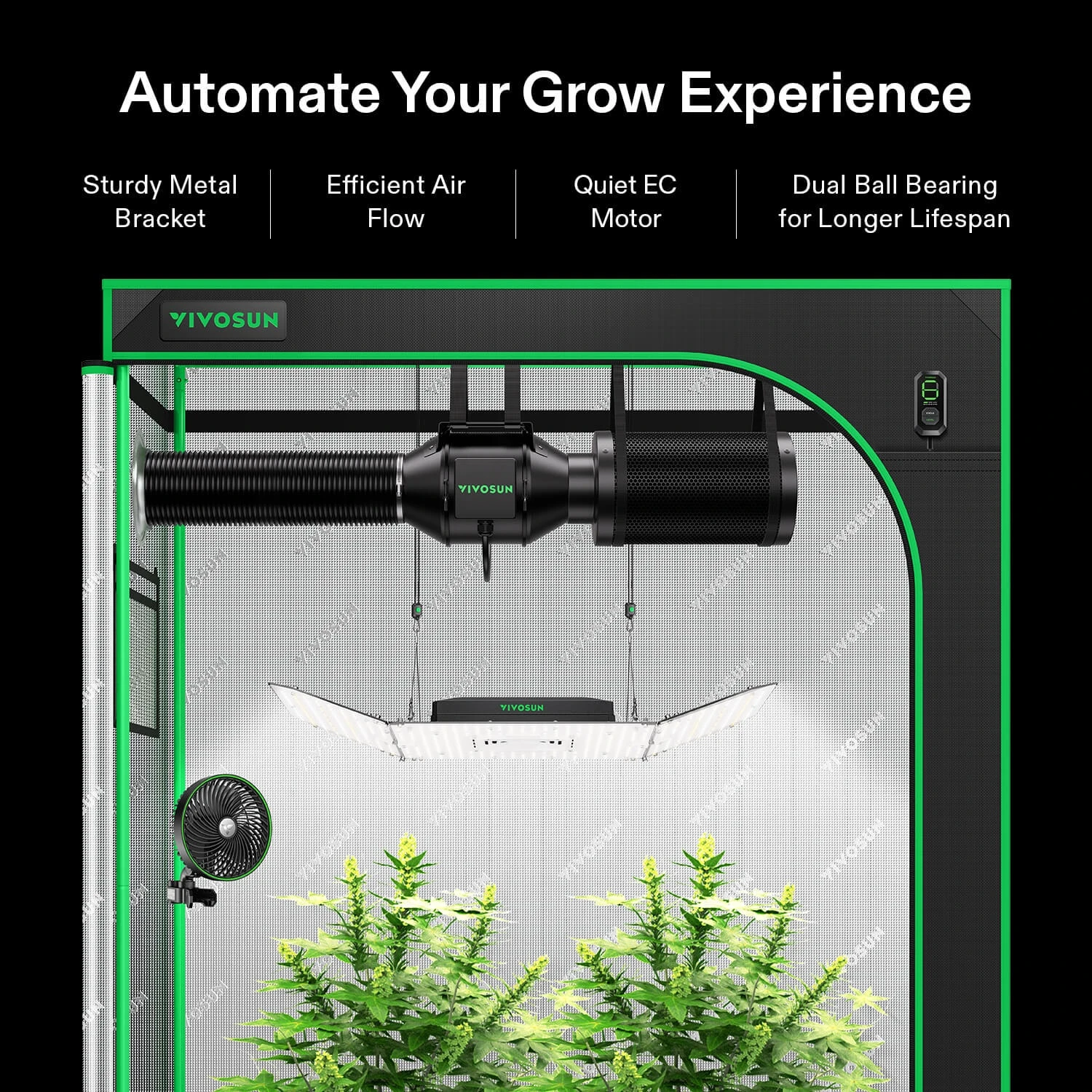 AeroZesh G8 Inline Duct Fan Combo W/ GrowHub E42A Controller For Heating Cooling Booster, Grow Tents