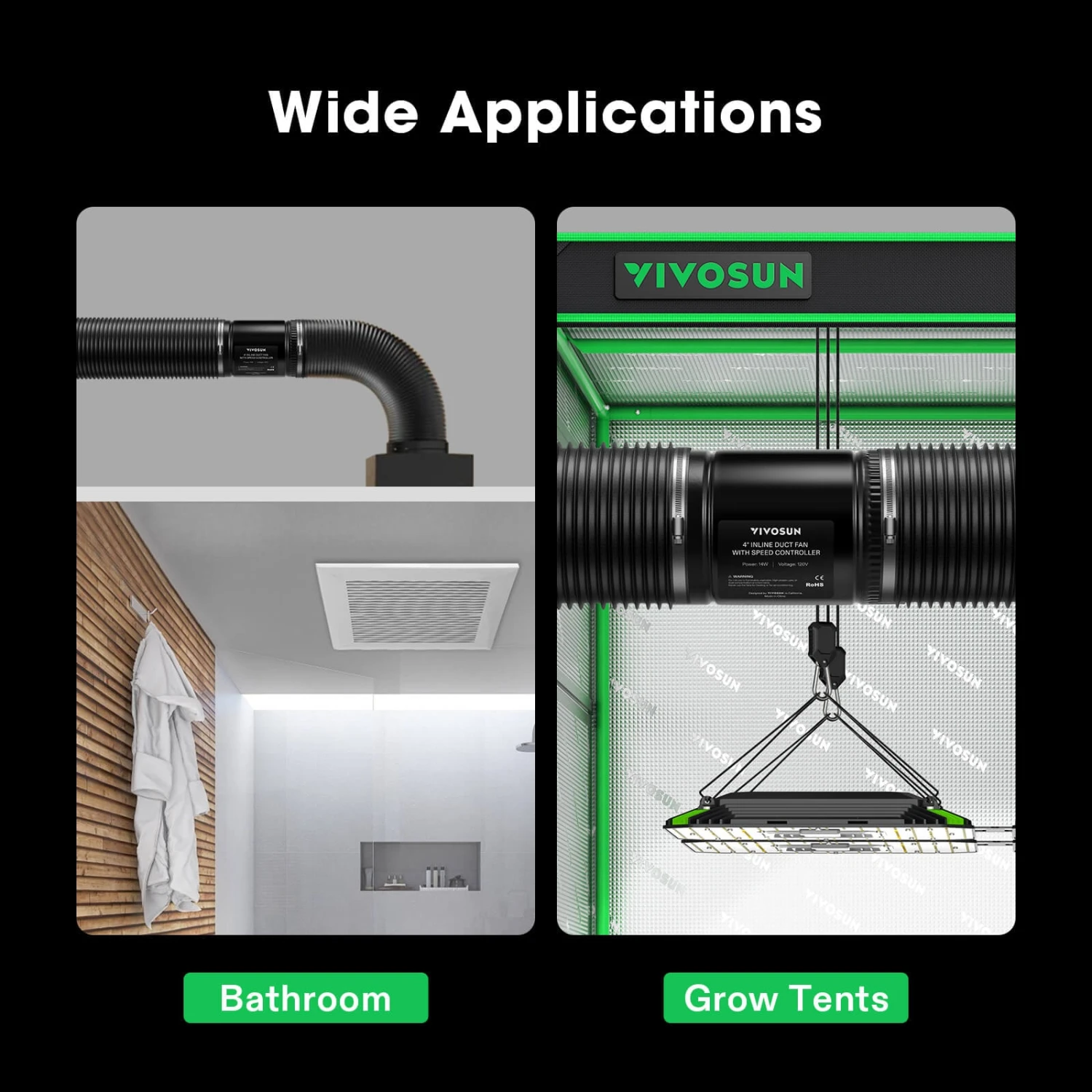 AeroZesh G4 Inline Duct Fan And GrowHub E42A Controller For Heating Cooling Booster, Grow Tents