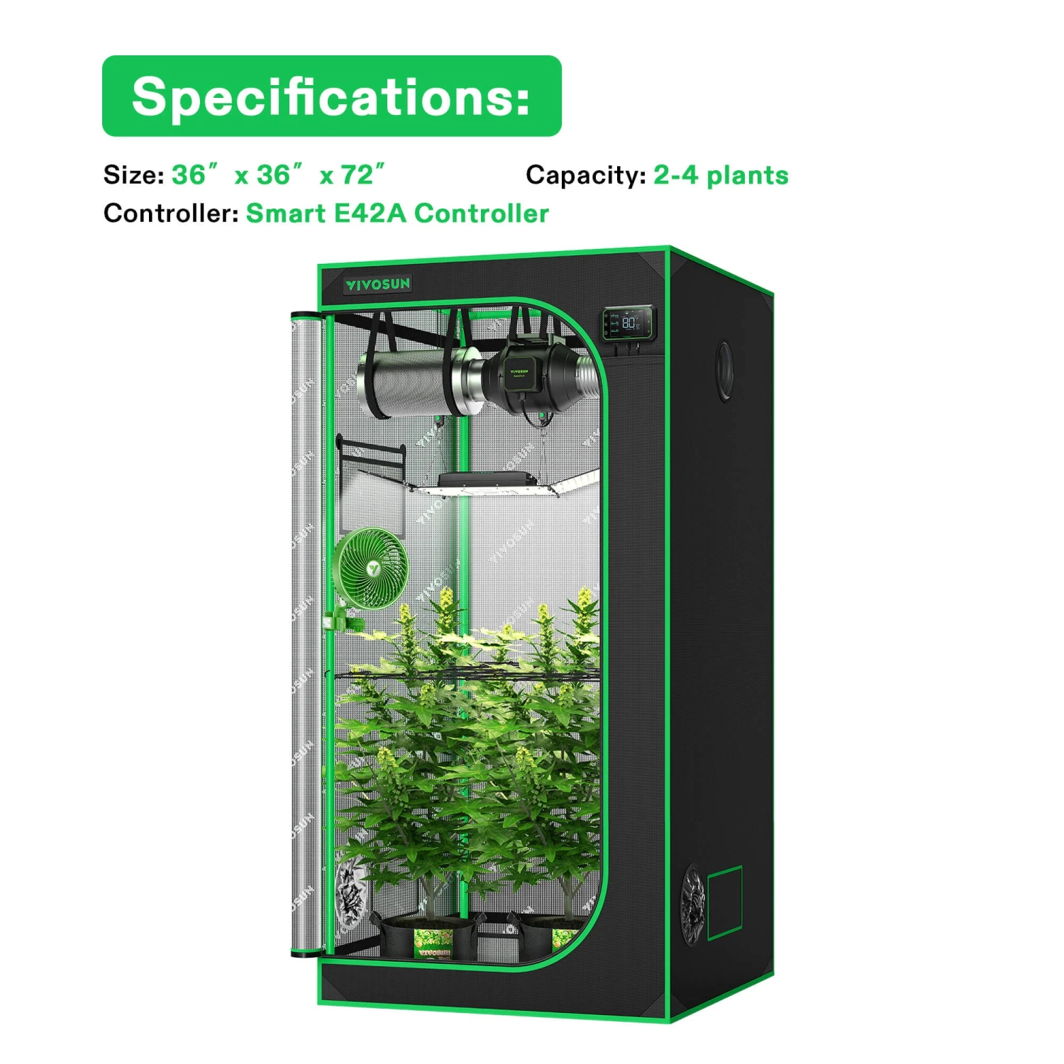 Smart Grow Tent Kit GIY-SGS-44 4×4, 4-Plant Complete System, With WiFi E42A Controller, 2x 200W AeroLight Wing LED Grow Light, 6-inch AeroZesh S6 Ventilation Combo, And AeroWave E6 Clip-on Fan